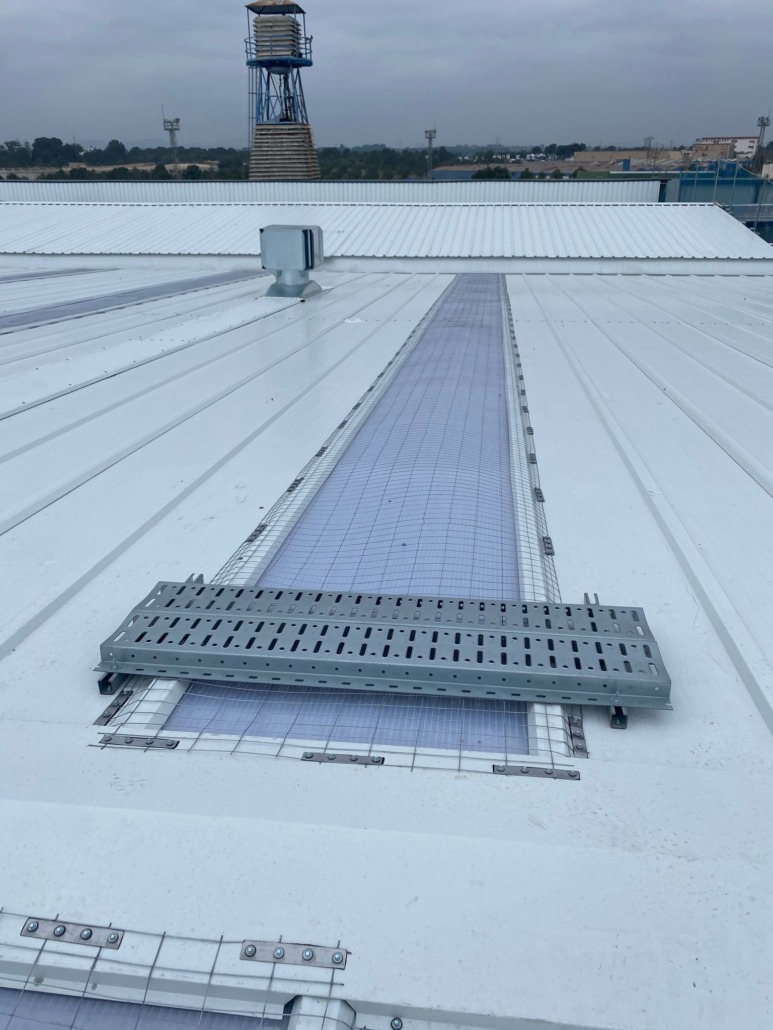 El uso de mallas de protección y pasillos técnicos no solo es una cuestión de cumplimiento normativo, sino también de prevención de accidentes ya que la instalación adecuada de estos elementos reduce significativamente el riesgo de caídas, resbalones o lesiones graves en la cubierta del lucernario, priorizando la protección colectiva ante la protección individual.